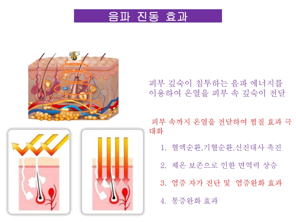 이를 통해 기혈순환 개선, 통증 완화, 노화된 피부 재생, 근육·인대·뼈·관절의 빠른 회복을 촉진합니다.